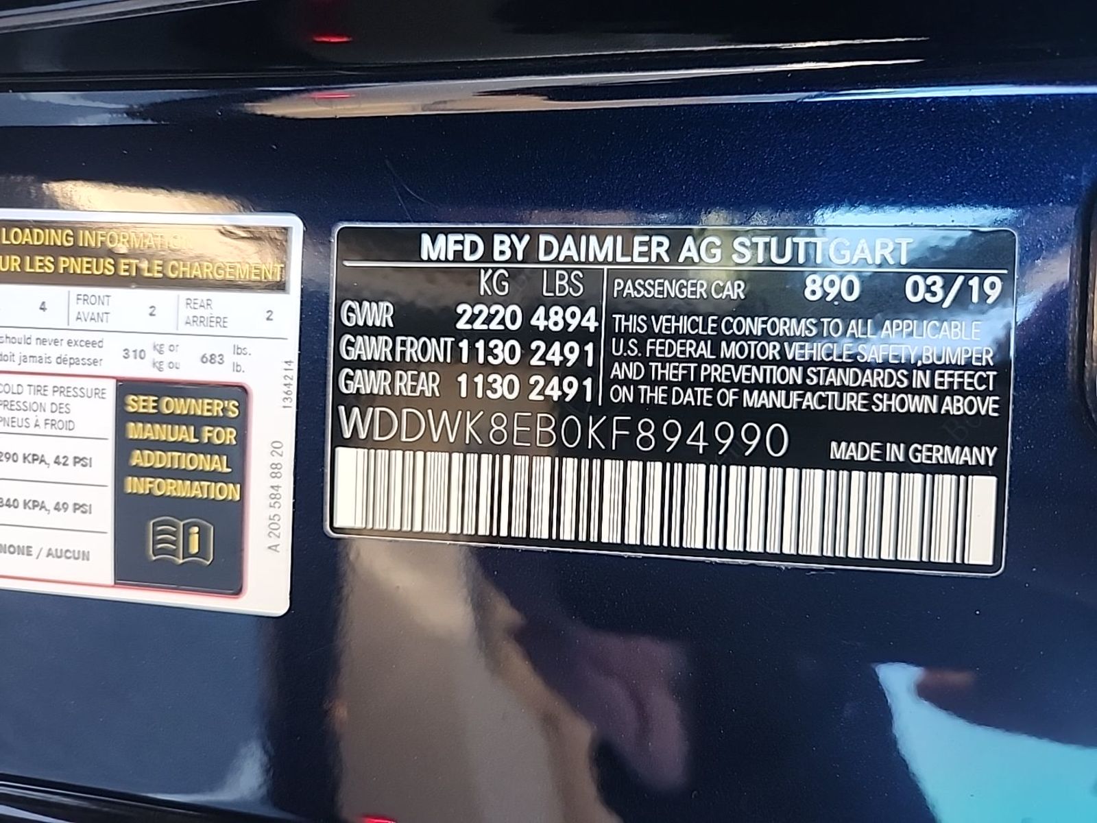 | Vin Number | WDDWK8EB0KF894990 |