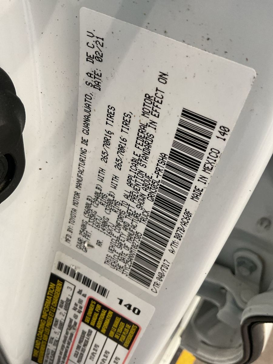 | Vin Number | 3TYCZ5ANXMT027305 |