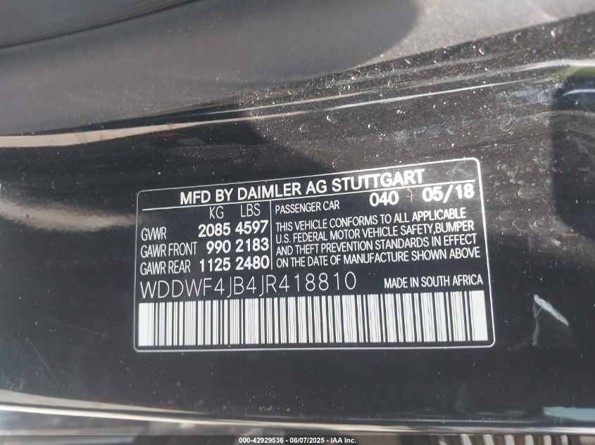 Vin Number WDDWF4JB4JR418810