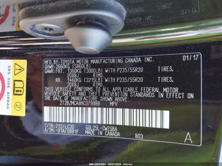 Vin Number | 2T2BZMCA8HC079988 |